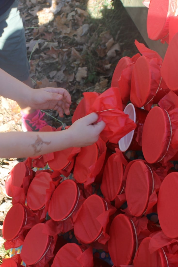 We made a fun game where you punch the tissue paper to find a prize inside the cups.