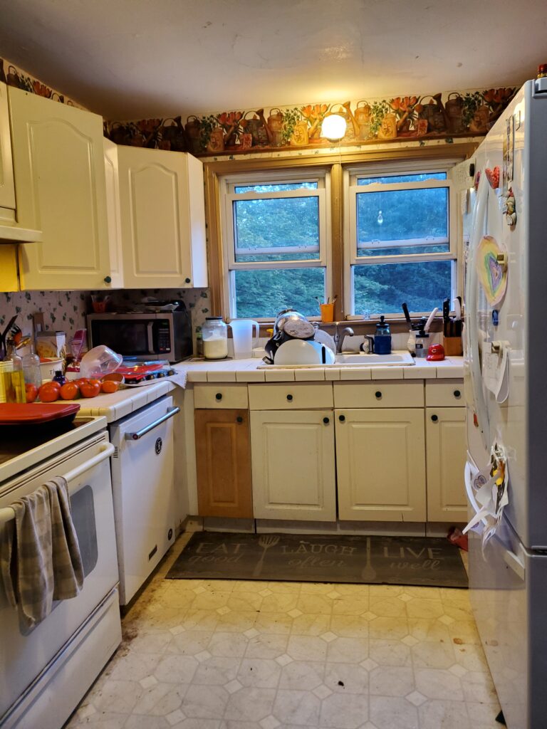 The previous owners remodeled the kitchen using the cheapest materials available. Some day I’ll have a pretty kitchen! But not while we’re in debt.